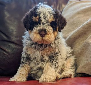 At 4 months of age. the undercoat has completely darkened. This puppy has heavy roaning.